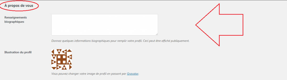 – Compléter la partie « A propos de vous » : écrivez une courte biographie (3 lignes pas plus).