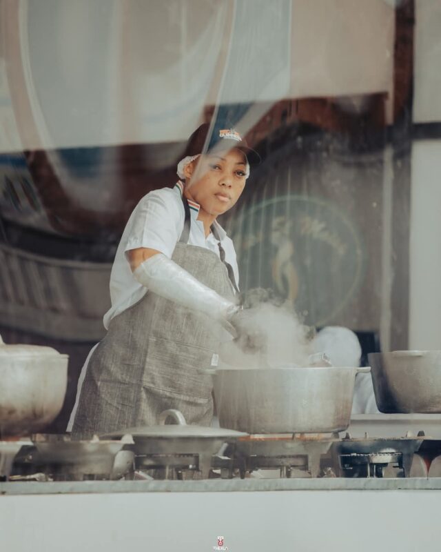 « Je pense que c’est une femme qui croit en ses rêves et en elle-même. Zeinab représente une armée de jeunes cuisinières souvent minimisées par rapport aux cuisiniers masculins. Elle est pour moi la preuve que les femmes ont beaucoup à dire dans le domaine de la restauration. C’est aussi, et surtout, un symbole d’espoir. Même si je la sens un peu fatiguée car elle ne profite pas pleinement de ses 5 minutes de pause, j’y crois et je prie pour elle. Quand je vois tout l’espoir qu’elle communique à mes filles en cuisine, mon cœur est dans la joie. C’est une Woman King ☺️ »